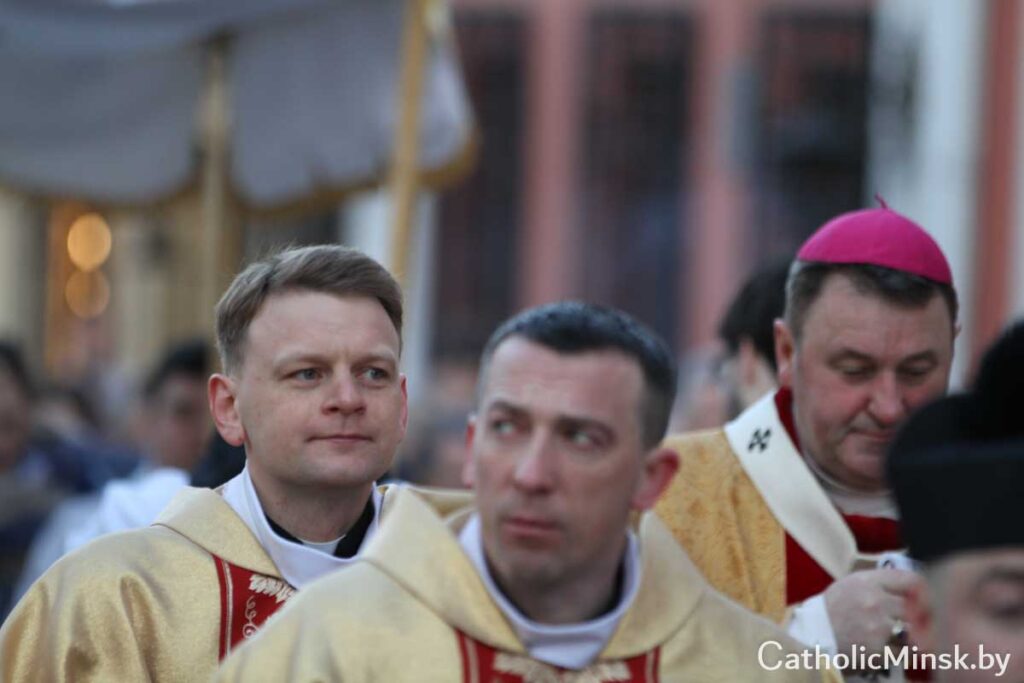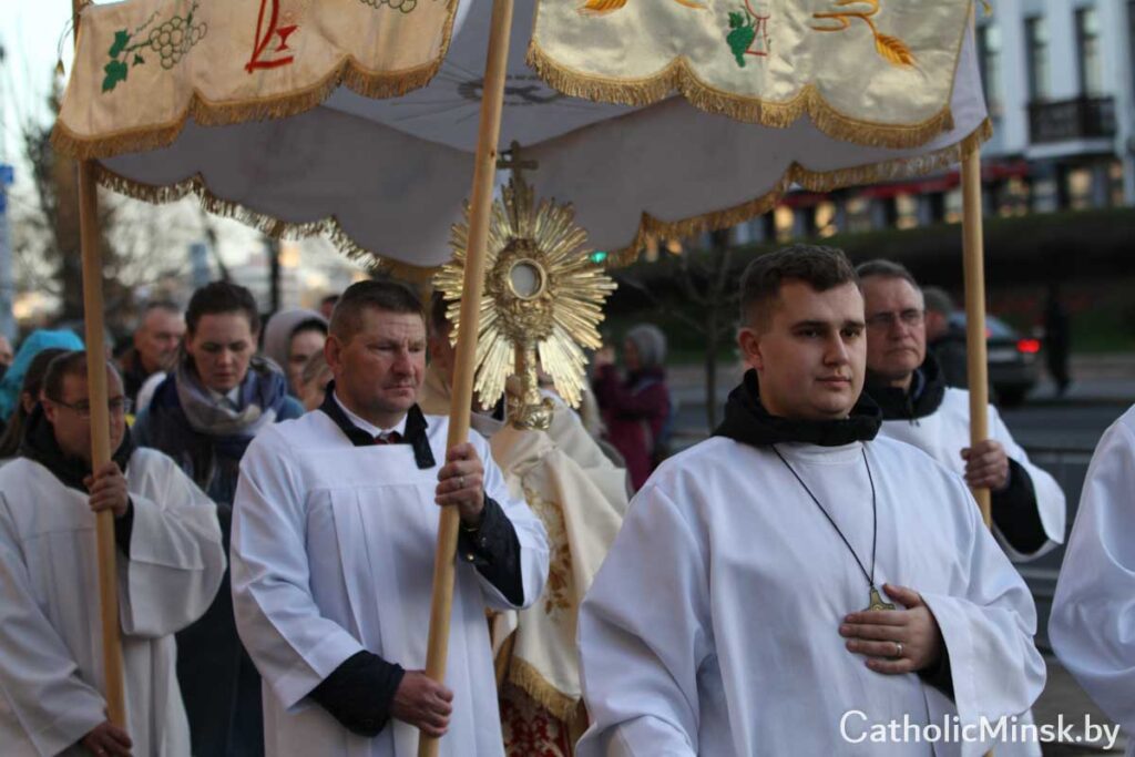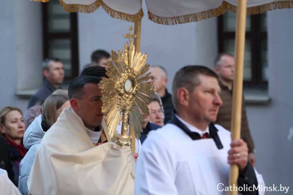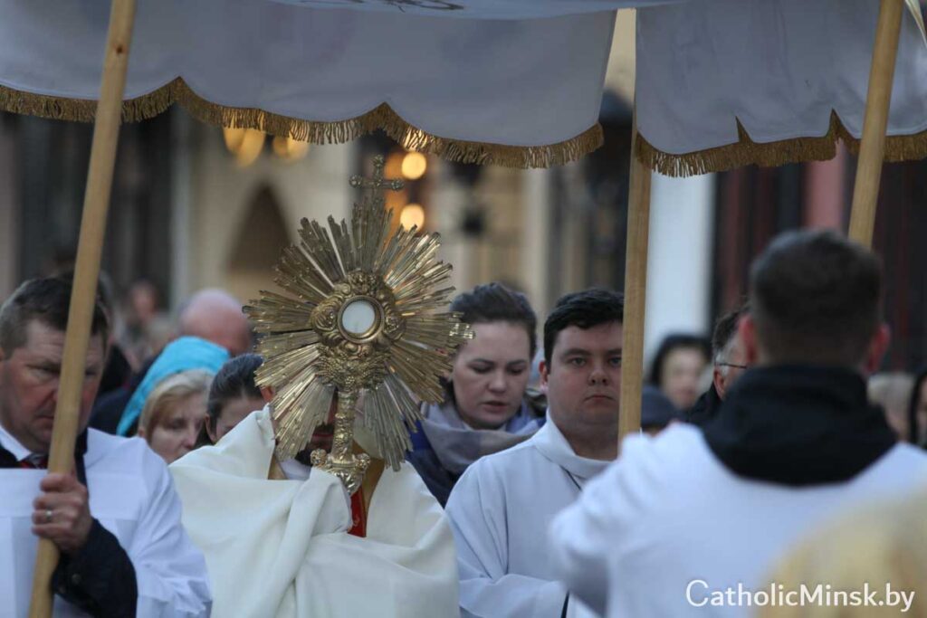 Святкаванне «свята святаў» распачалося рэзурэкцыйнай працэсіяй з Найсвяцейшым Сакрамэнтам па вуліцах, прылеглых да катэдры. Пасля працэсіі вернікамі быў адспяваны старажытны ўрачысты гімн «Цябе, Бога, праслаўляем» і адбылося благаслаўленне Найсвяцейшым Сакрамэнтам. Чытанне з Евангелля паводле святога Яна яшчэ раз нагадала аб праўдзівасці і намацальнасці Пасхальнай таямніцы: Хрыстус сапраўды ўваскрос, яго гроб пусты (пар. Ян 20, 1-9), і гэта падмурак веры і надзея кожнага хрысціяніна.