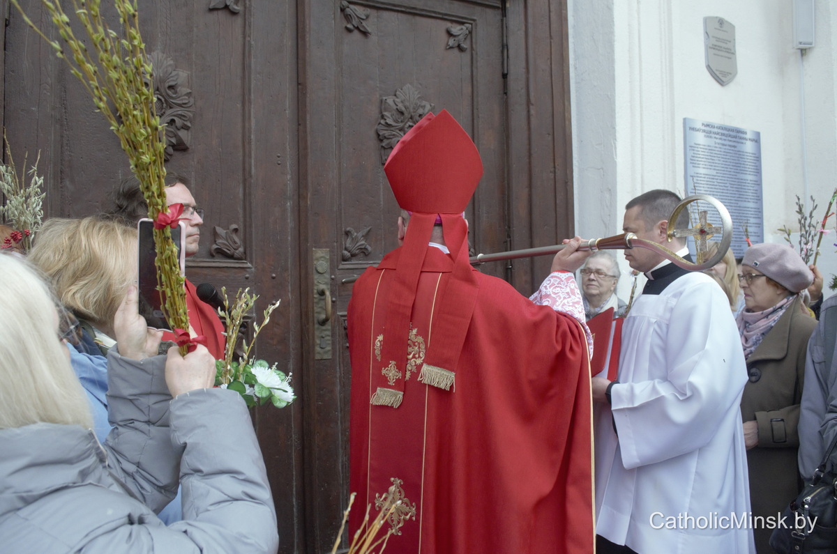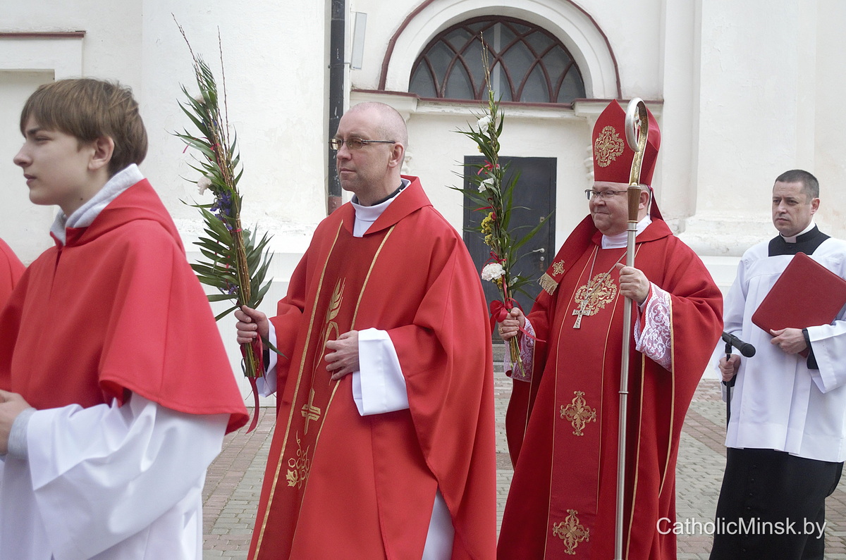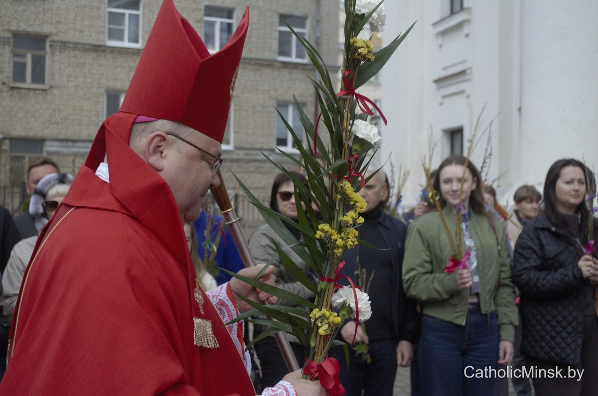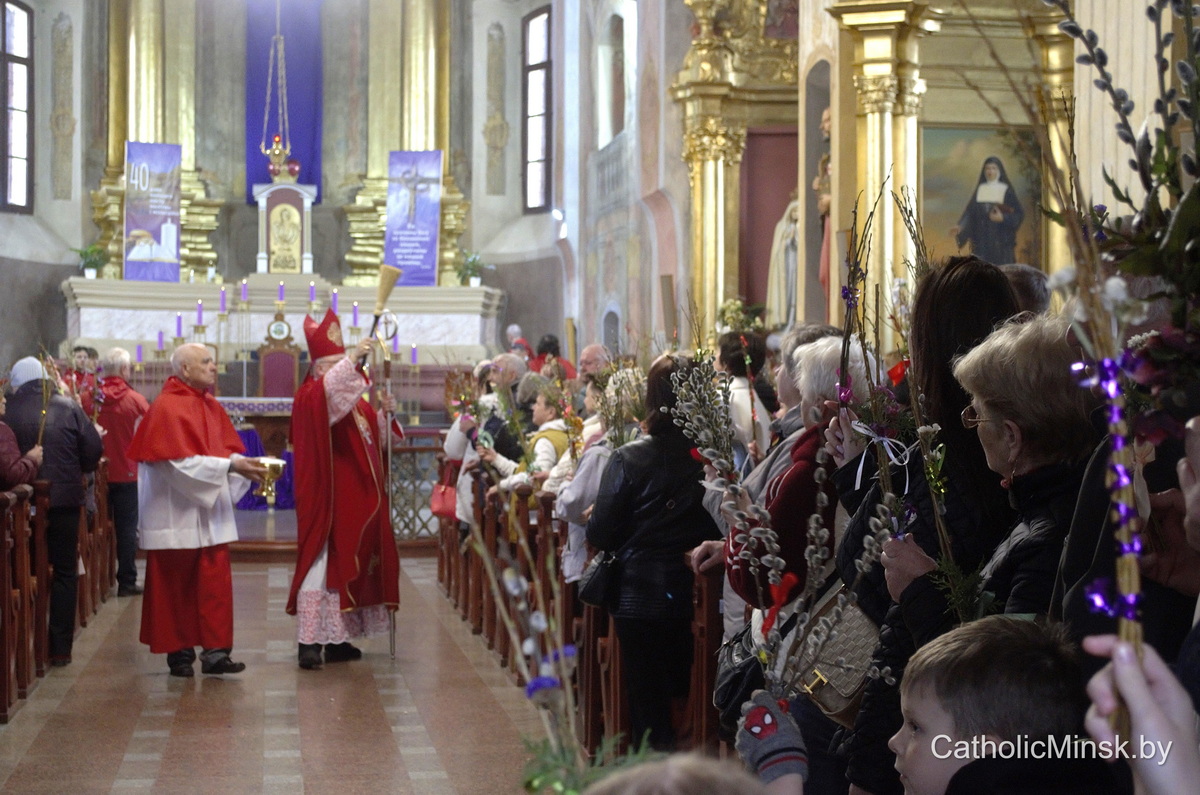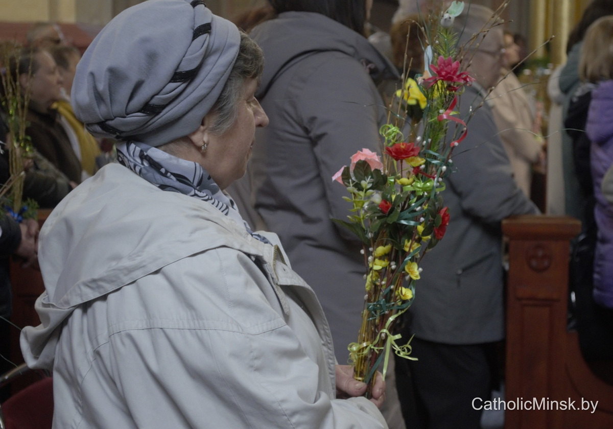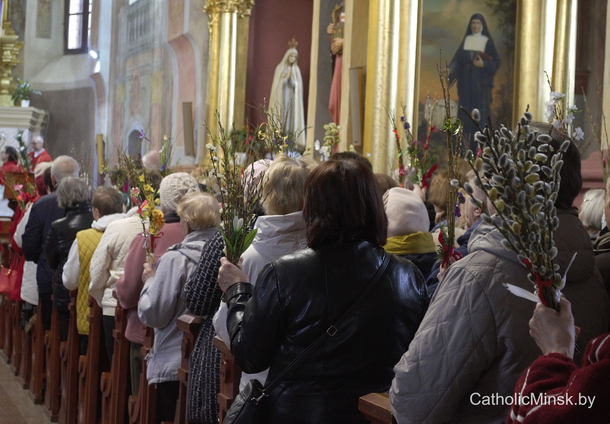 Вернікі ў гэты дзень трымаюць у руках пальмавыя галінкі і вербы — сімвал пашаны і вернасці. Але біскуп заклікаў прысутных паглядзець глыбей: