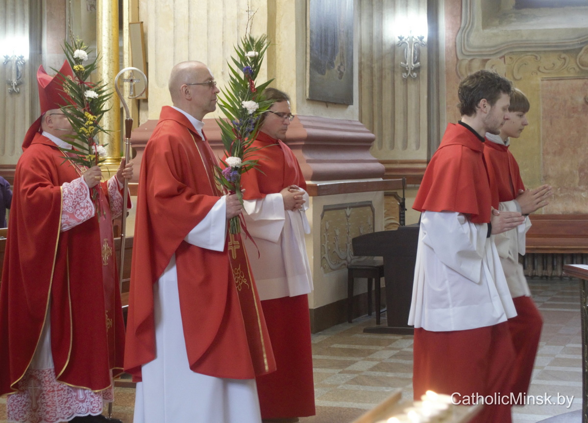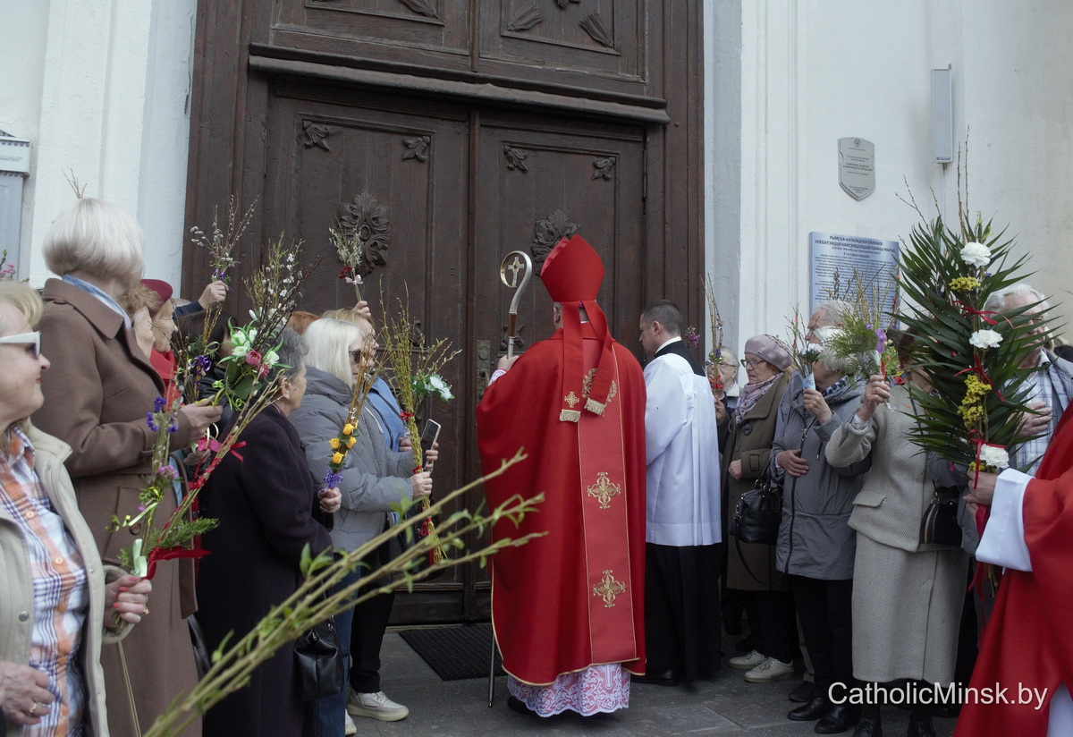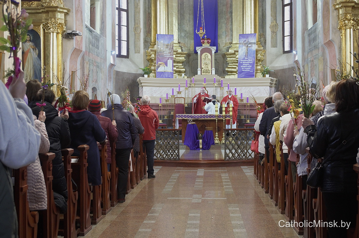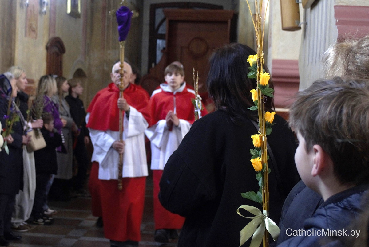 29 сакавіка магілёўская катэдра напоўнілася асаблівай радасцю і хваляваннем. Вернікі з вербамі ў руках сабраліся, каб разам перажыць таямніцу Пальмовай нядзелі — дзень, калі Хрыстус уваходзіць у Ерузалем як Валадар, але Валадар незвычайны, поўны пакоры і любові.