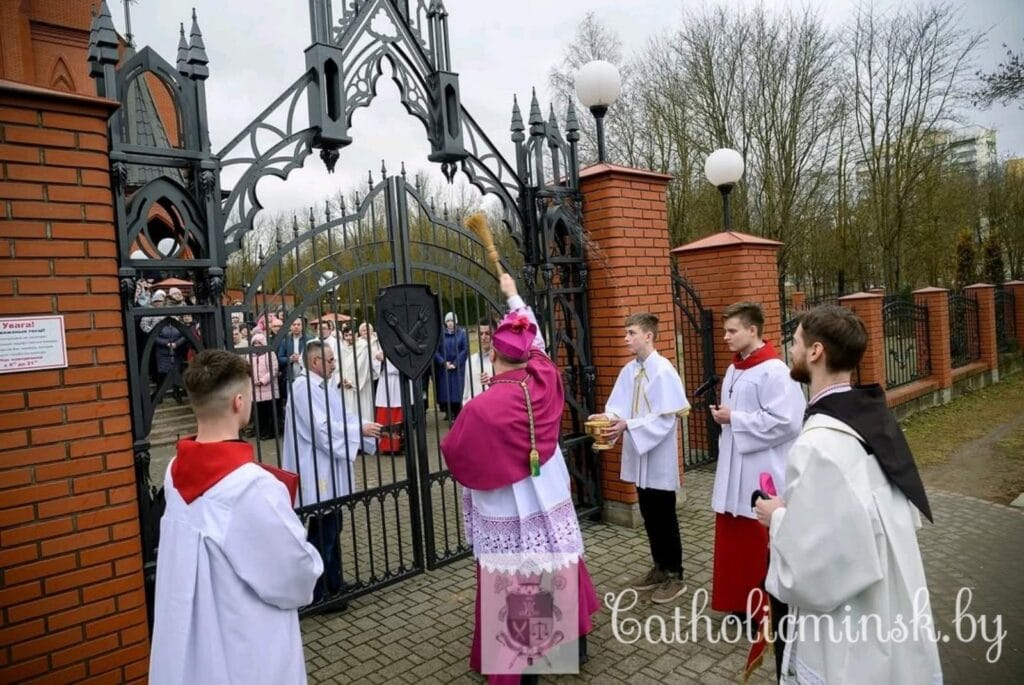 Біскуп Андрэй асвяціў новую браму святыні, просячы, каб кожны, хто будзе праз яе ўваходзіць, ішоў з чыстым сэрцам праслаўляць Бога.