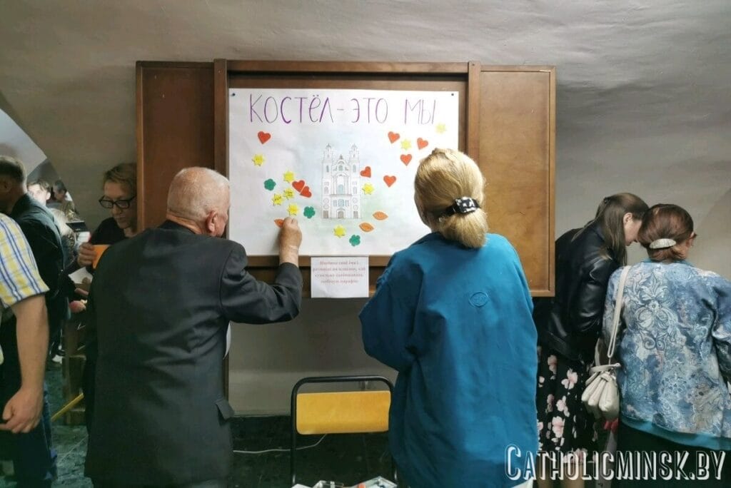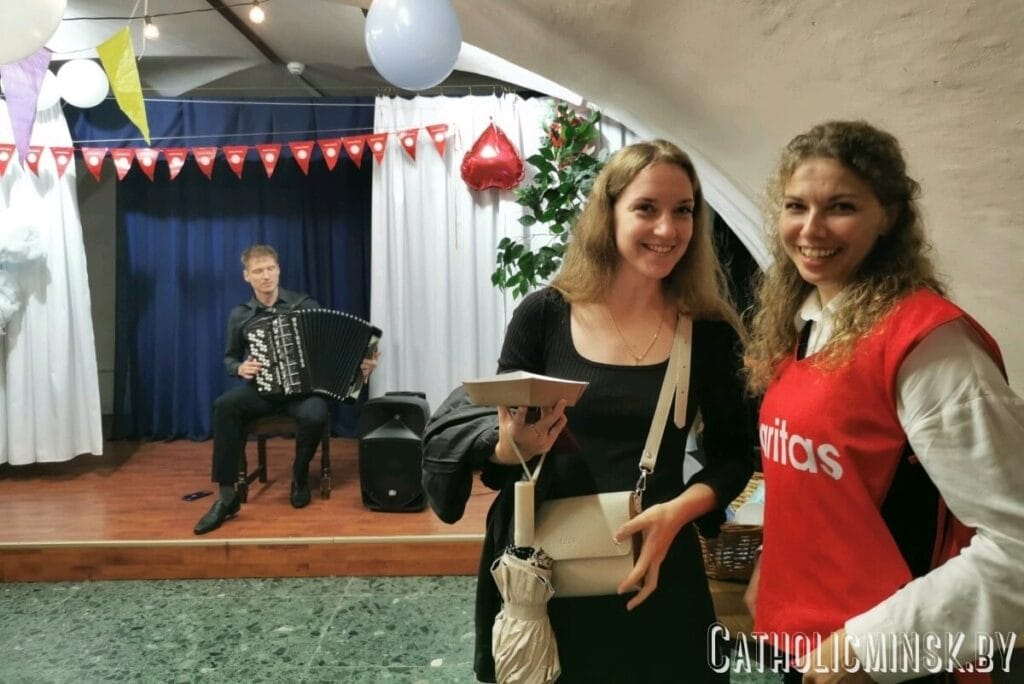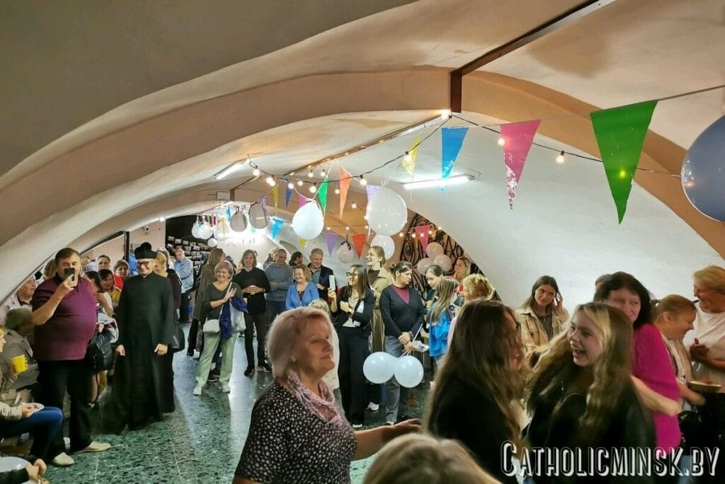 Менавіта там, у прыгожа аздобленых да свята сутарэннях касцёла, парафіяльны Caritas зладзіў смачны салодкі пачастунак і цікавыя тэматычныя зоны: у адмысловых месцах можна было ўласнаручна зрабіць паштоўку для людзей з інваліднасцю ― дапамагчы парафіяльнай ініцыятыве, пакінуць свой творчы «след» на дрэве віншаванняў для архікатэдры, пагартаць дыхтоўныя альбомы з архіўнымі фотаздымкамі з жыцця парафіі, патанчыць пад папуры з папулярных мелодый пад гукі баяна і, адыходзячы, узяць на памяць аб сёлетнім парафіяльным свяце невялічкі скрутак з цытатай са Святога Пісання.