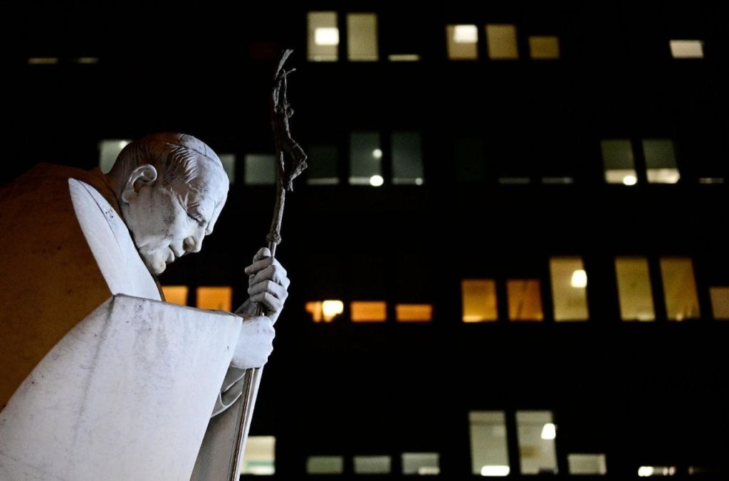 Помнік святому Яну Паўлу ІІ перад клінікай Джэмэлі (AFP or licensors)