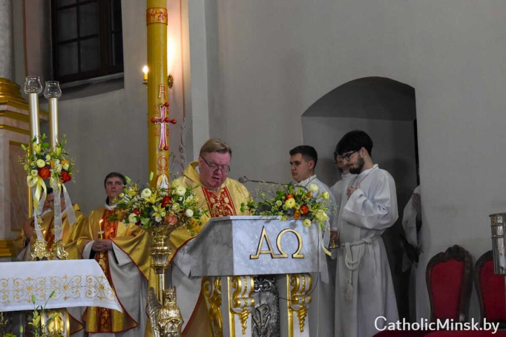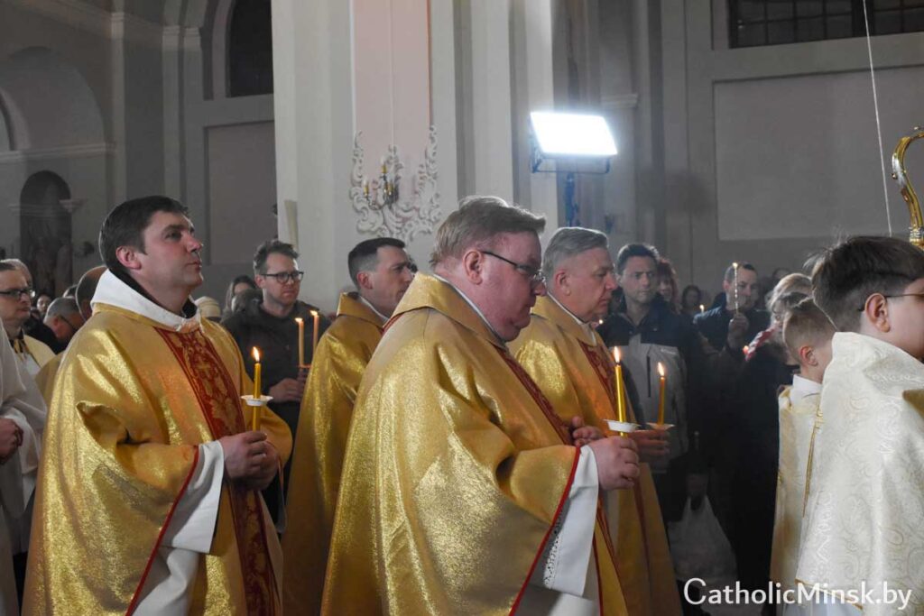 Завяршылася Пасхальная вігілія Эўхарыстычнай літургіяй і ўрачыстым благаслаўленнем.