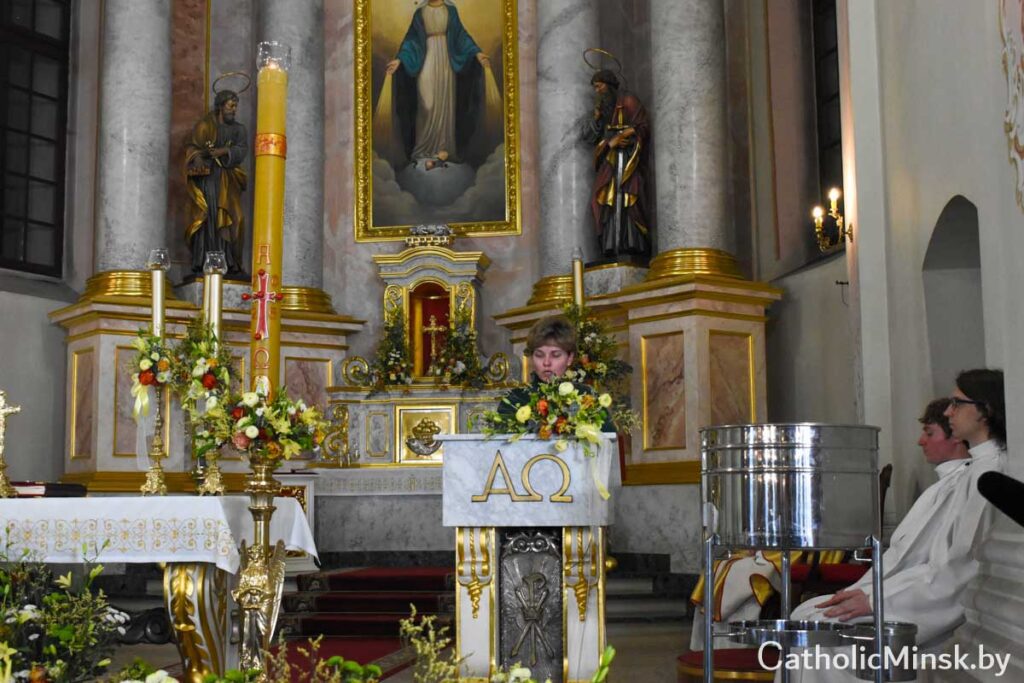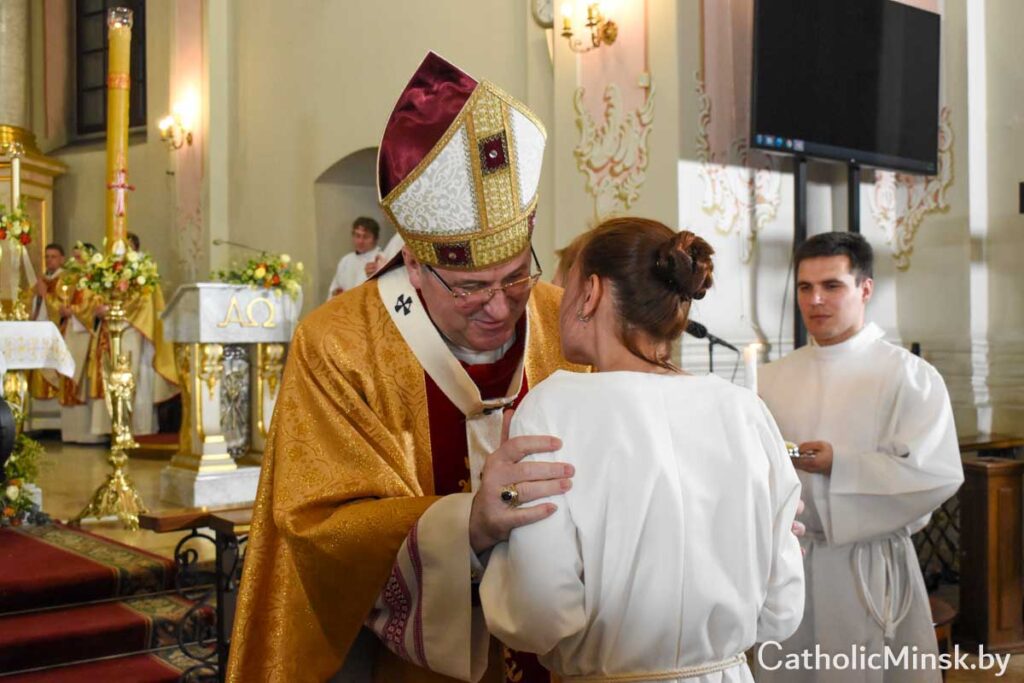 Наступнай часткай цэлебрацыі стала Літургія хросту, падчас якой супольнасць Касцёла прыняла новага члена — Агату, а ўсе астатнія вернікі аднавілі абяцанні, дадзеныя на ўласным хросце імі самімі або іх бацькамі.